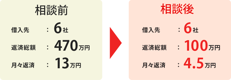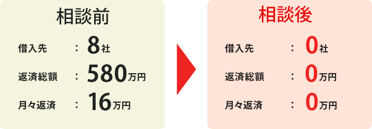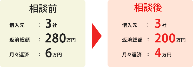 ※解決の結果は、借り入れ条件・取引状況により個人差があり、必ずしもこのような結果になるとは限りません。